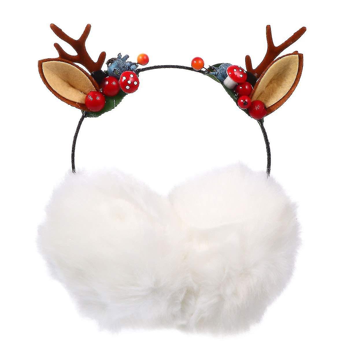 Christmas Earmuffs Cartoon Reindeer Antler Headband Warm Winter Ear For Xmas Holiday Party Headdress
