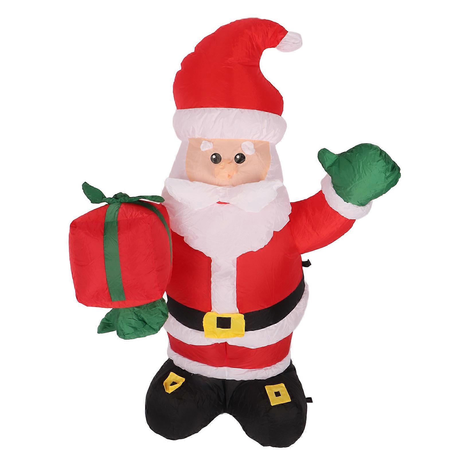 Christmas Inflatable Decoration 4FT Polyester Fiber Blow Up Father Christmas Holding A Gift for Xmas Outdoor Garden Lawn Yard Party UK Plug 220V