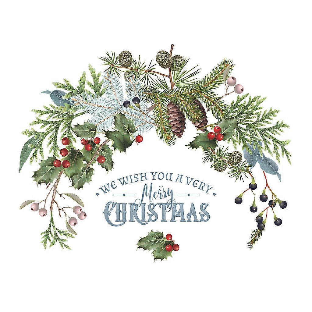 Christmas Wall Stickers Pine Cone Branches Green Plant Door Window Cling Decal
