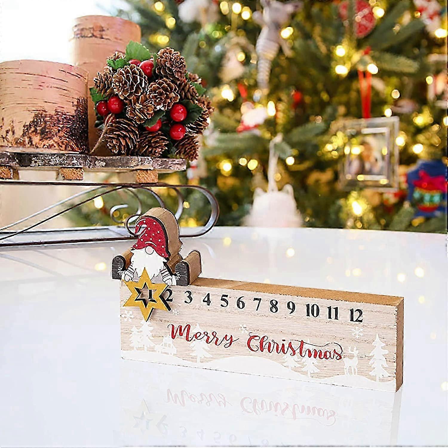 Christmas Wood Sign Wooden Mobile Calendar Decoration Faceless Old Man Christmas Countdown Signs