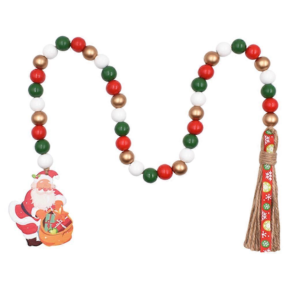 Christmas Wood Bead Garland for Home Decor 5Pcs with Tassel Beaded Garland