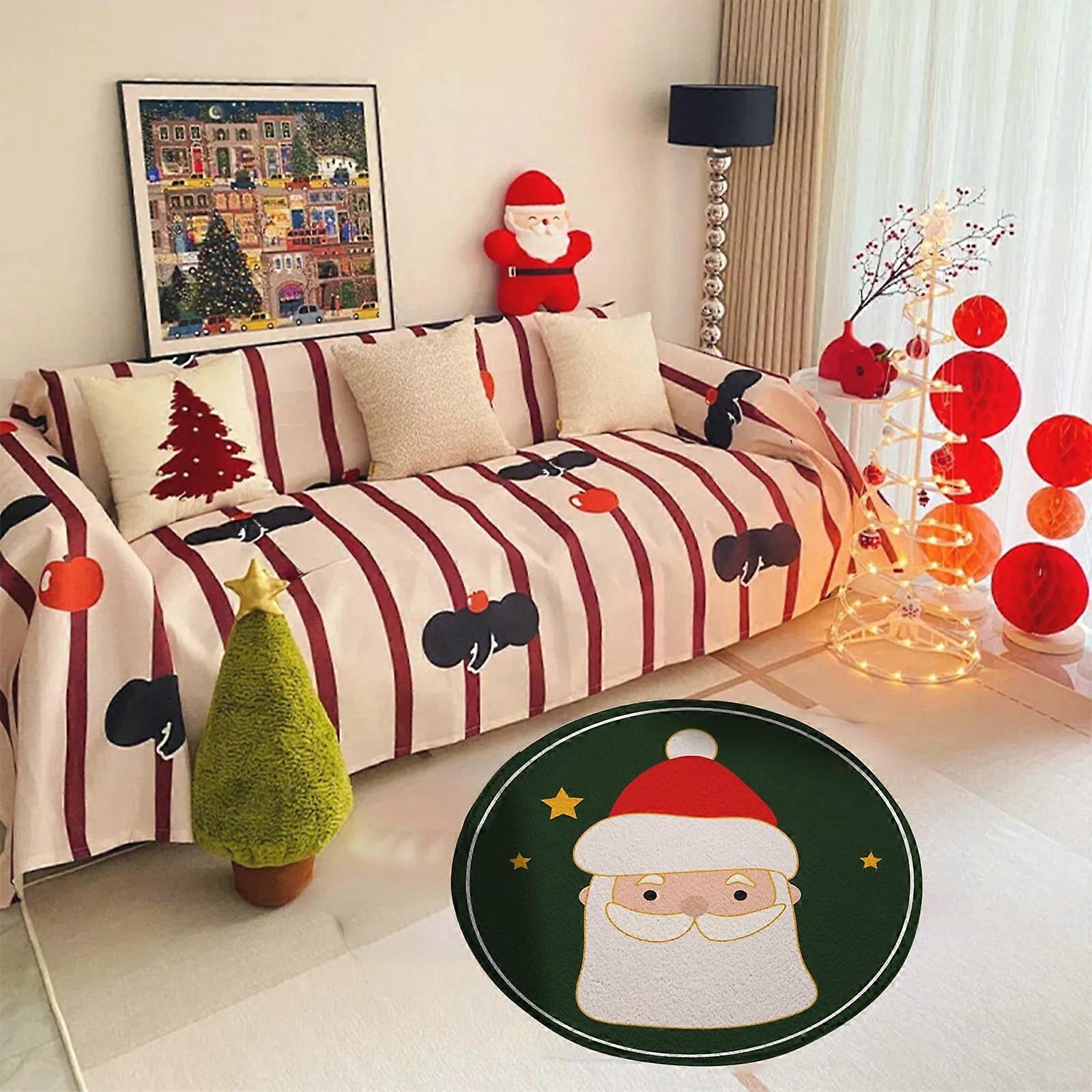 Christmas Living Room Carpet Santa Claus Christmas Tree Snowflake Floor Mat Easy To Maintain Bedroom Bedside Blanket: