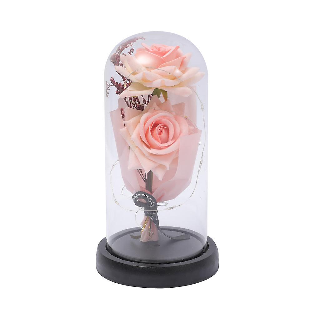 Xmas Ornaments Christmas Preserved Fresh Flower Dried Flower Led Glass Cover Rose Xmas Gift