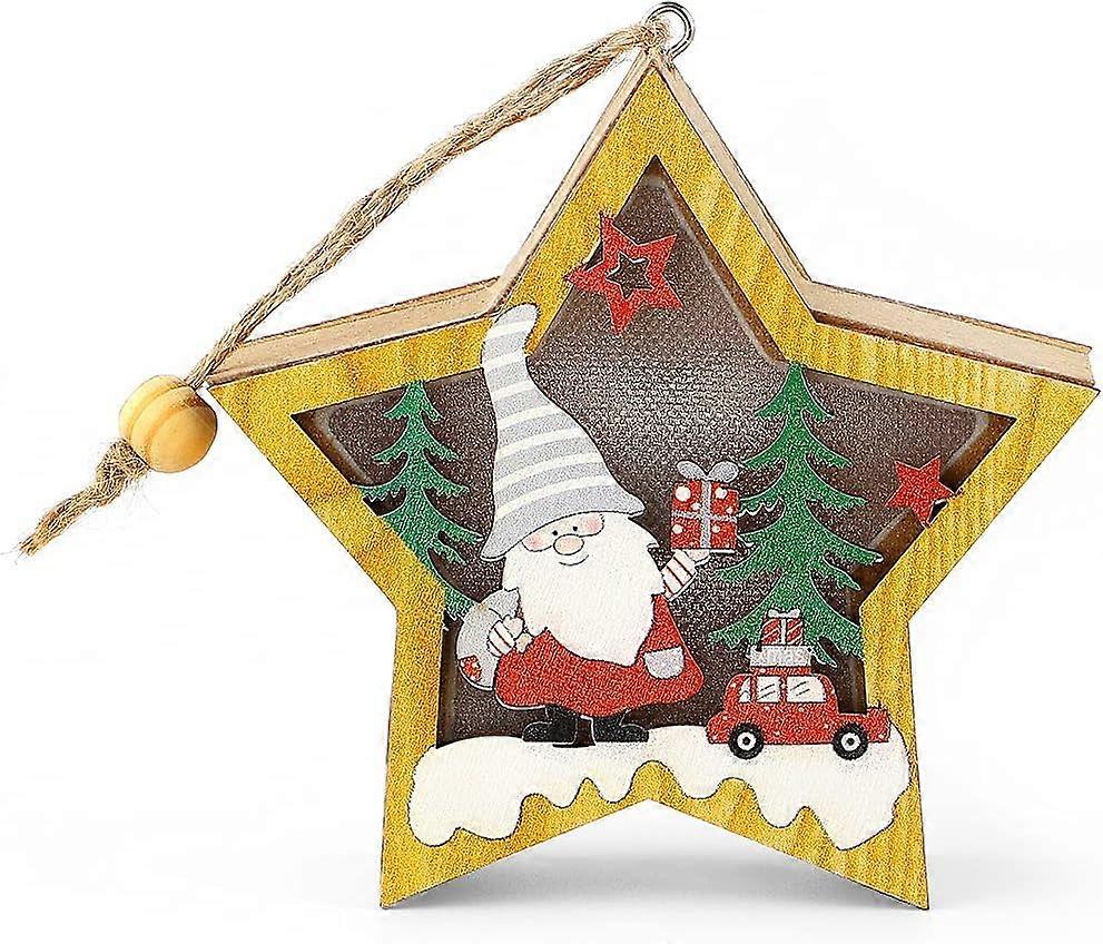 WARM CHRISTMAS DECORATION - In the cold winter night, a myriad lights of families are twinkling. Along with Christmas approaching, are you looking for something to decorate your home for a little warm? Yes! wooden Christmas ornaments with LED light that would light up and warm your room! PREMIUM QUALITY MATERIALS - The Christmas ornaments are made of high-quality wood and each seams are bonded manually. The hollow pattern layer part is cut by digital laser and coated with environmentally friendly pigments. Acrylic materials were used in the front transparent and translucent mask. SOFT LED WARM LIGHT - Compared with the colorful lights around the Christmas tree, this light of ornament appears in warm colors. It brings out a warm and peaceful atmosphere, and also a touch of warmth to the cold winter night. In terms of power supply, it uses three LR1130 type batteries which are replaceable. EXQUISITE MODELING - Cute five-pointed star outer contour modeling with jute rope hangers which can displayed on a tree or stocking hook. The cartoon Santa Claus makes this ornament looks much playful. And since the front cover is translucent, the light that comes out would not be so dazzling at night. NICE CHRISTMAS GIFT - No matter to put this exquisite wooden ornament on a tree, the cabinet, the table or the bedside, it can bring a prominent decoration to the showcase, shoppe, household or office room. And it's a perfect choice to give it to your friends or family as a Christmas gift! color: as show size: 4.3*4.3in