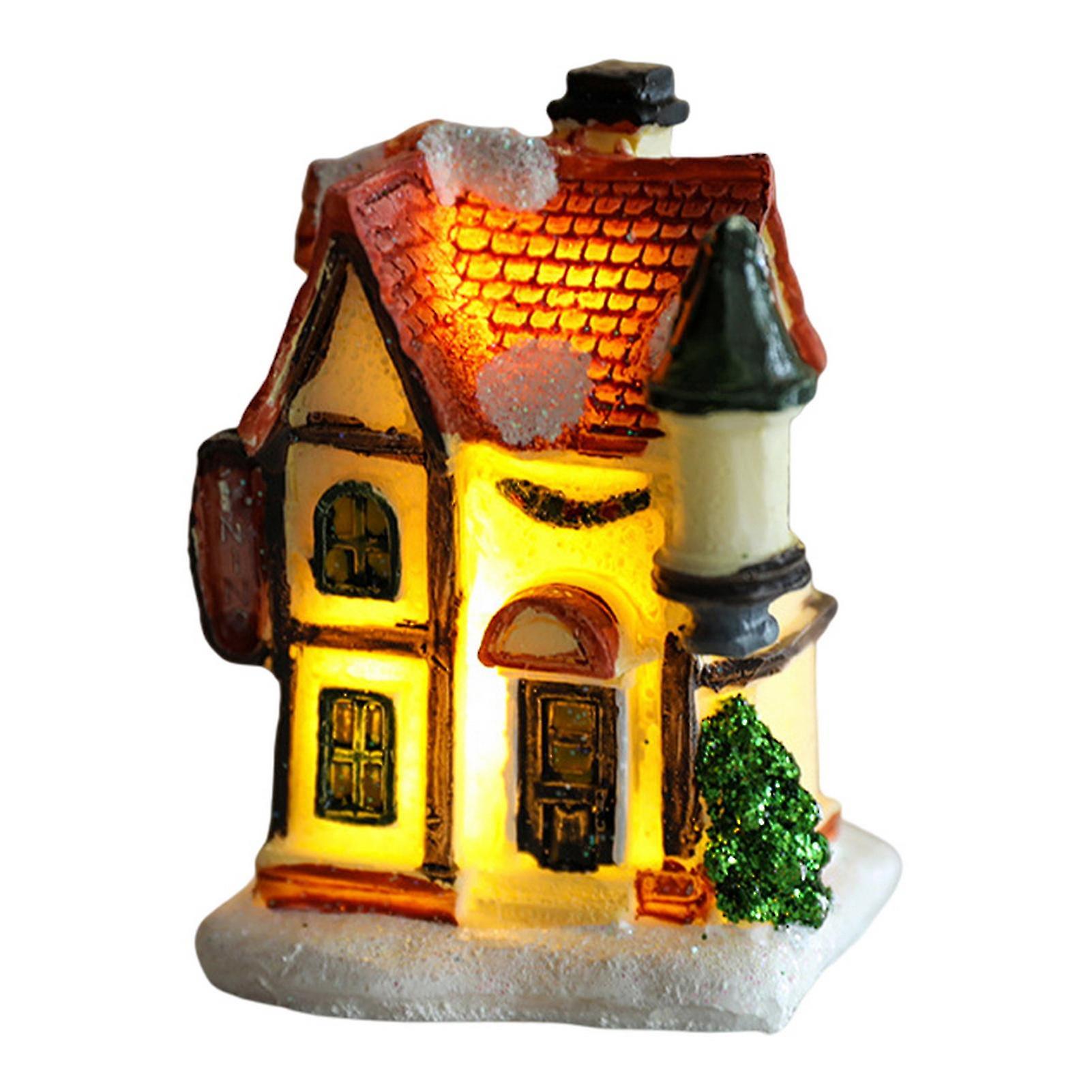Christmas Ornament Luminous Shatterproof European Style Micro Landscape Fadeless Miniature House Figurine Display For Home
