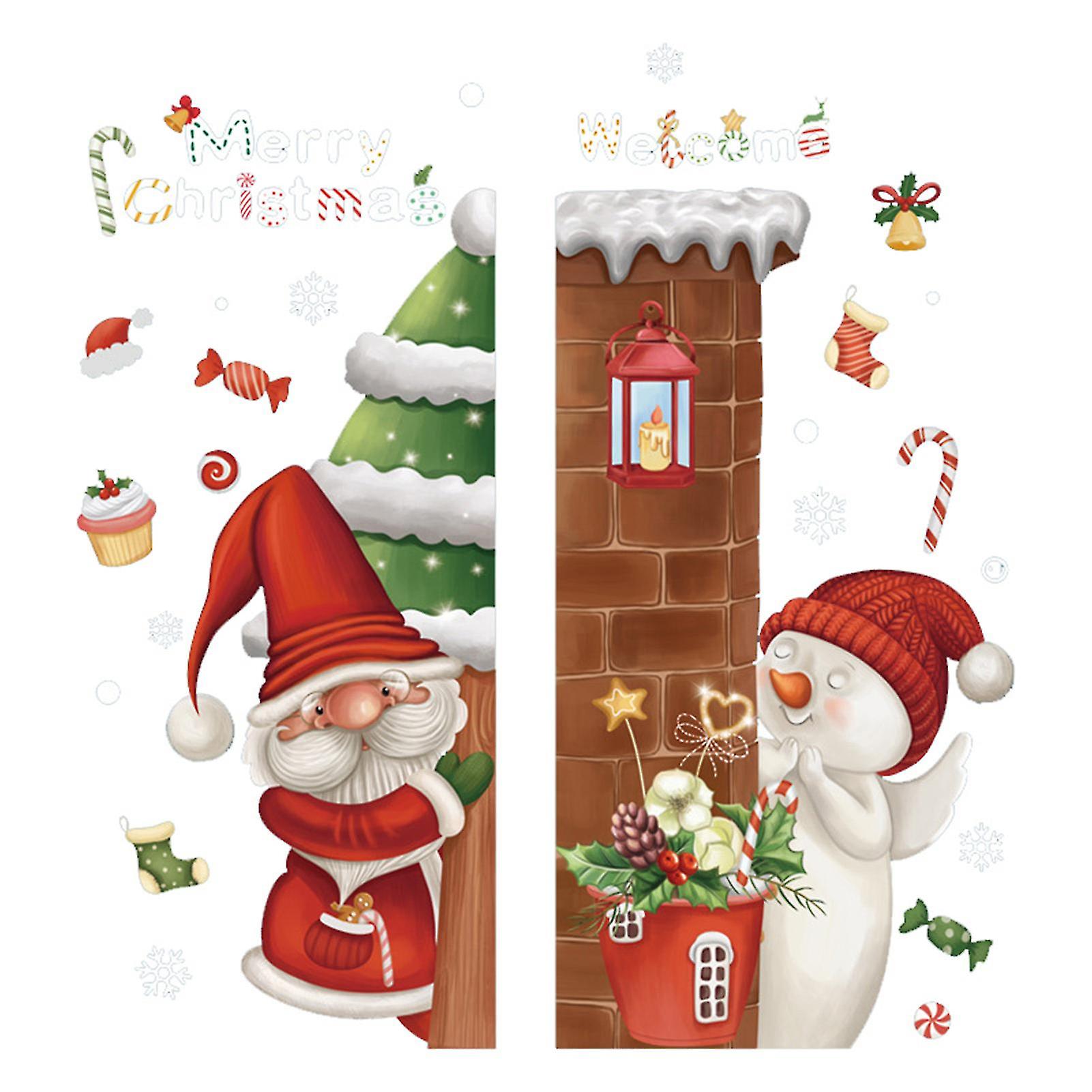 Christmas Glass Sticker Removable Peel And Stick Reusable Clear Print Waterproof Pvc Merry Xmas Santa Claus Tree Snowmen Shopwindow Decal