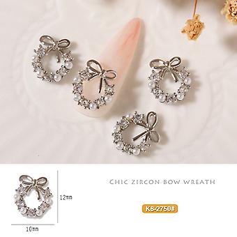 クリスマスガーランド蝶結びパールジルコンネイルアートチャームラインストーンXTMASリースネイルデザインクリスタルジュエリーネイルアートデコレーション