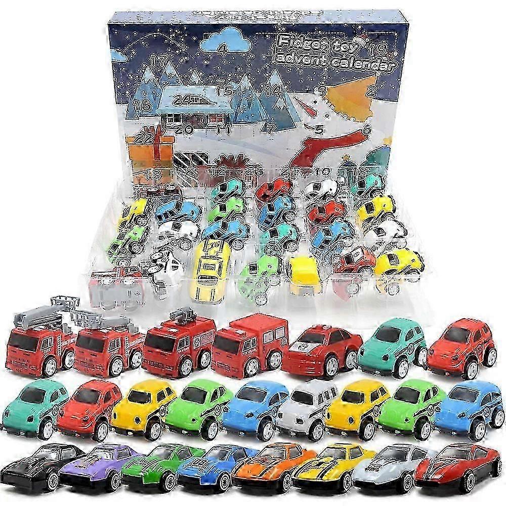 Christmas Countdown Calendar Blind Box 24 Pieces Alloy Fire Truck, Police Car, Engineering Vehicle Christmas Gift