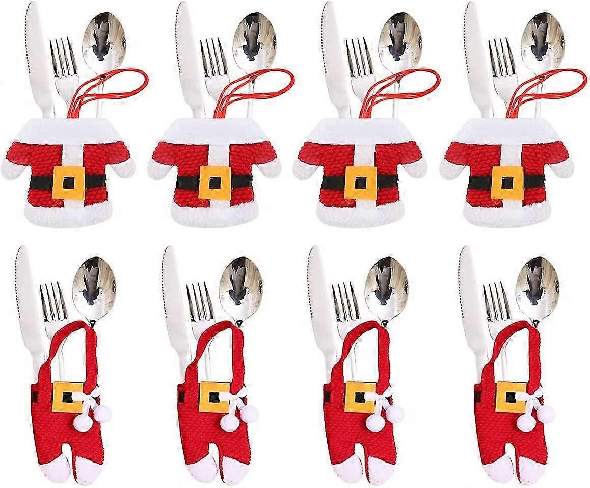 8 Pack Christmas Cutlery Holders: Table Decoration with Santa Theme, Pottery & Claus Set for Festive Display