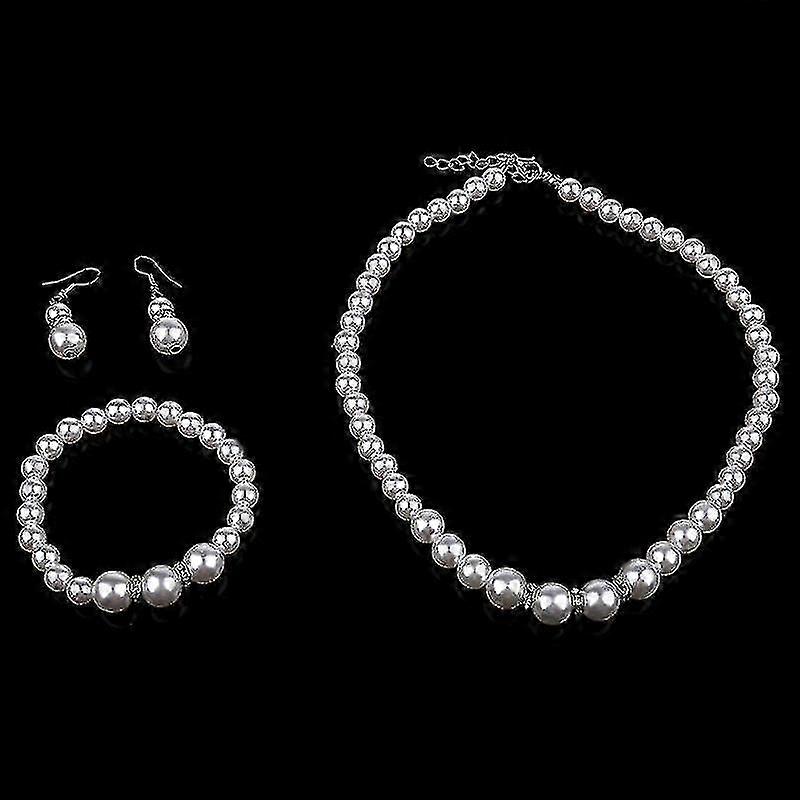 Christmas Gifts 3 Pcs Exquisite Pearl Earrings Necklace Bracelet Set Fashion Gifts Moer's Day