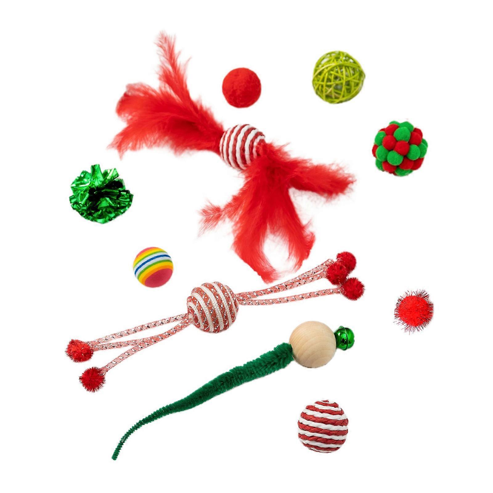 Features: Christmas theme cat balls toy set. Bright colors are more attractive to your kitten. Various shapes and colors attract pets' attention and promote sports and exercise. Keep your indoor cats entertained and active with this cat toy set. Let them unleash~their natural hunting instincts and have fun~. Specifications: Material: Plastic Size: As Shown Type: 4 Kinds Optional Package Includes: 1 Set Cat Balls Toy(8Pcs or 9Pcs or 10Pcs ) note: 1.Please allow 1-3cm errors due to manual measurement, make sure that you do not mind before you order. 2.Due to the differences between different monitors, the picture may not reflect the actual color of the item.