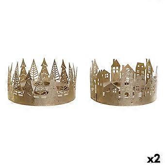 Christmas Candle Holder DKD Home Decor Golden Natural 16,5 x 16,5 x 8,5 cm (2 Units)