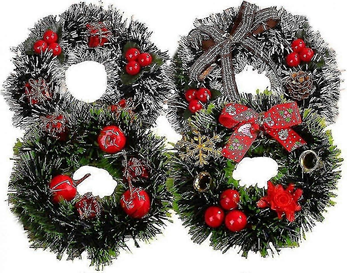 Christmas Candle Rings Mini Christmas Wreaths For Front Door Red Berries Hanging Ornament For Xmas Diy Party Table Centerpiece Gift (mixed Style), 12x