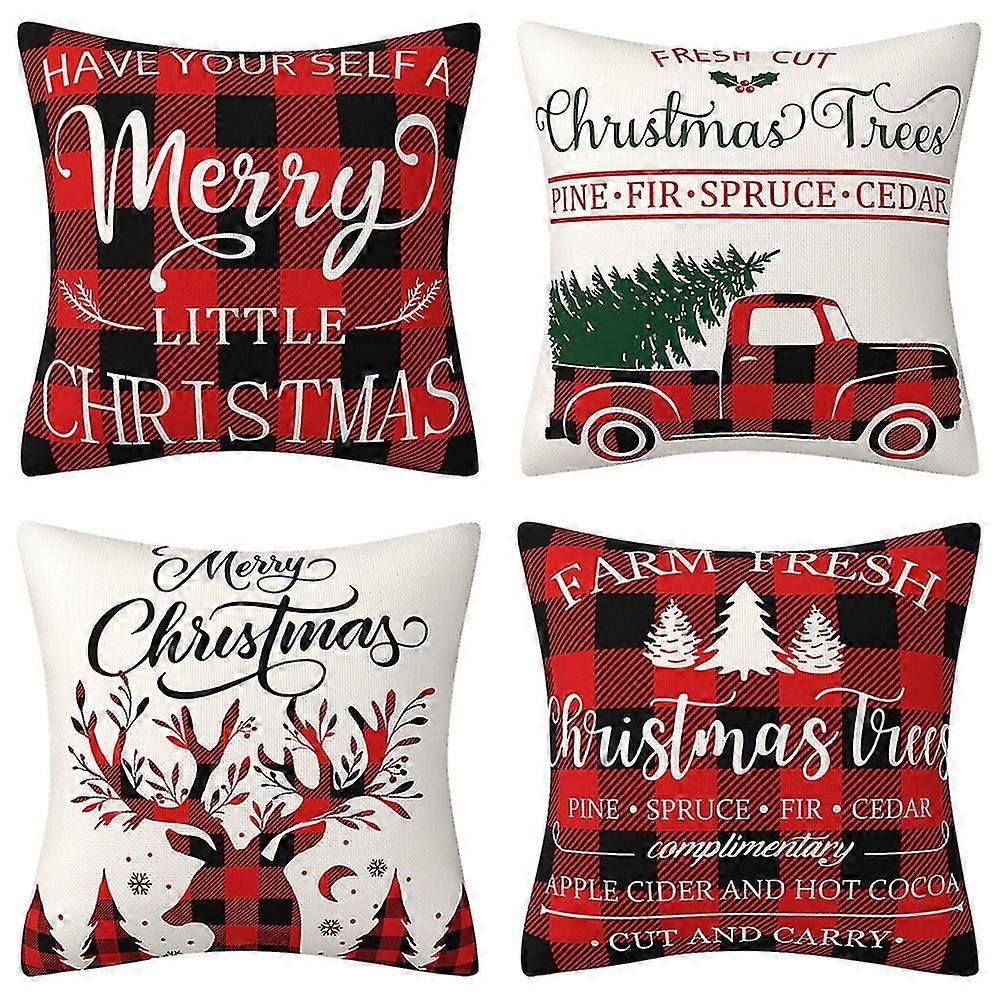 Christmas Cushion Cover,4 Pcs Linen And Cotton Christmas Decorative Pillow Cover,sofa Bed Cushion Pillow Cover,car Square 45*45cm