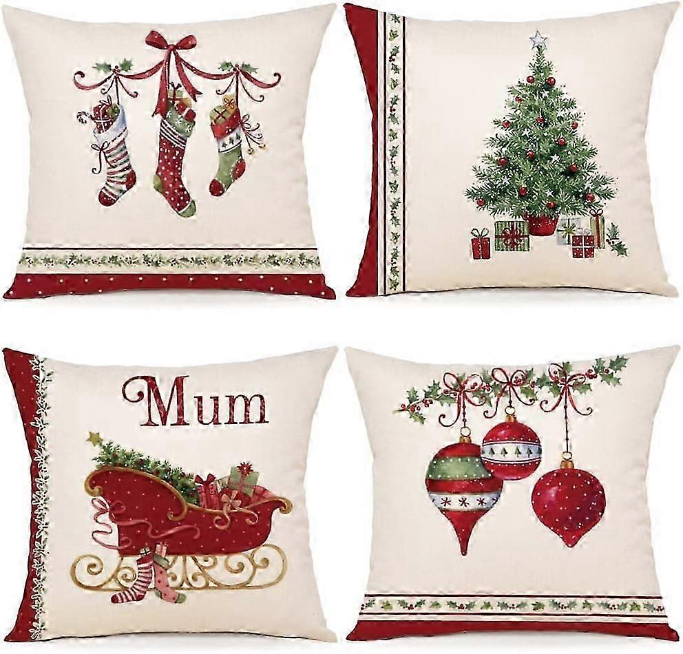 Christmas Cushion Cover 45x45 Set of 4 Decorative Christmas Cushion Cover Cotton 45 x 45 cm,for Bedroom,Chair, Bed