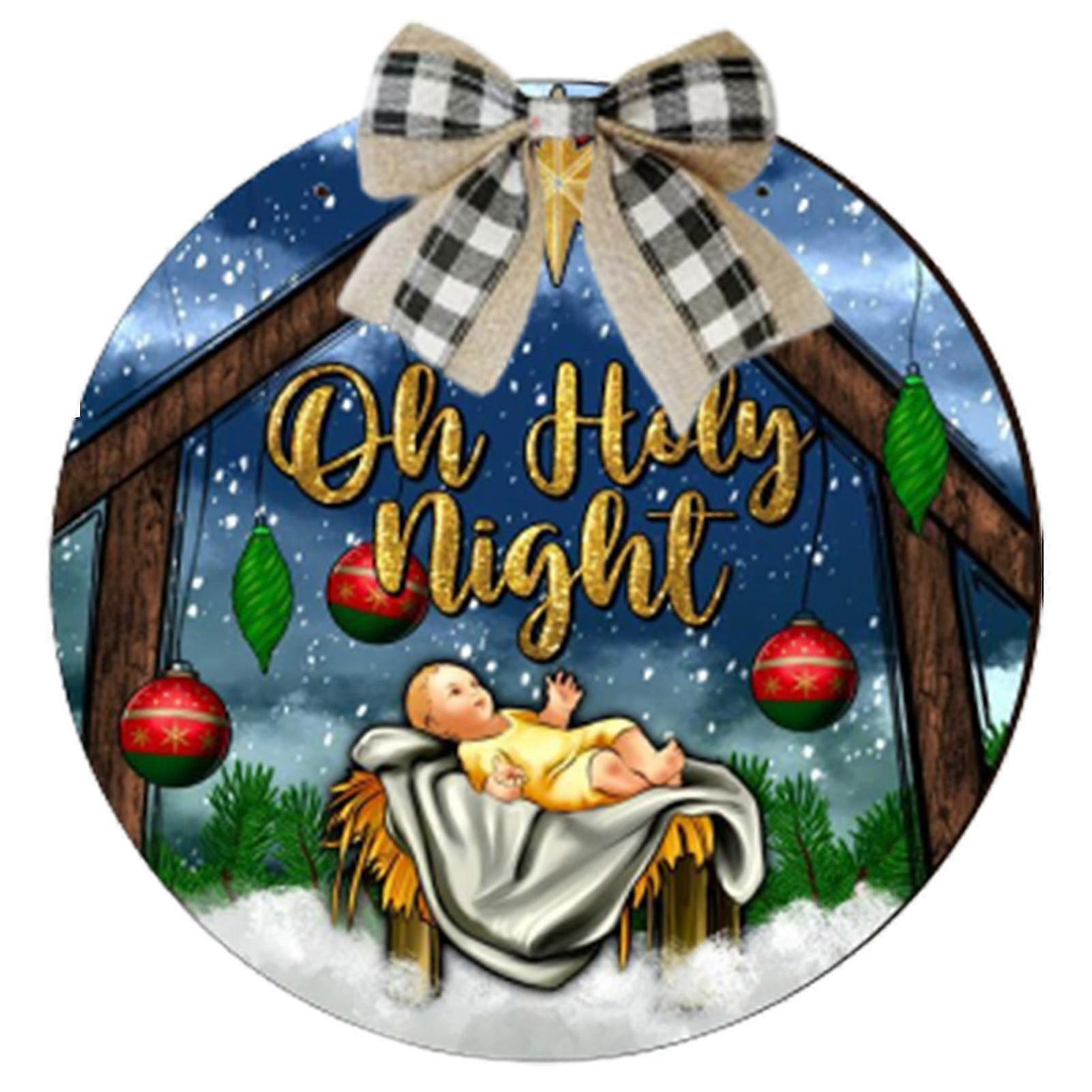 Xmas Christmas Jesus Wooden Sign Nativity Jesus Scene Colorful Paint Bow Sign Hanging Gift Xmas Decor,With Bow