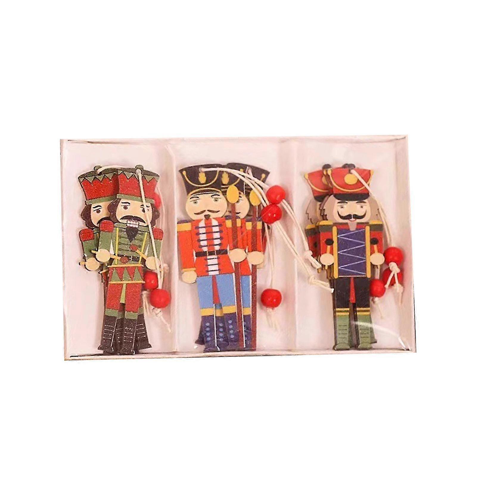 Xmas Christmas Wooden Decorations Creative Printing Cute Soldier Pendant Colorful Christmas Tree Decoration Accessories,Type A