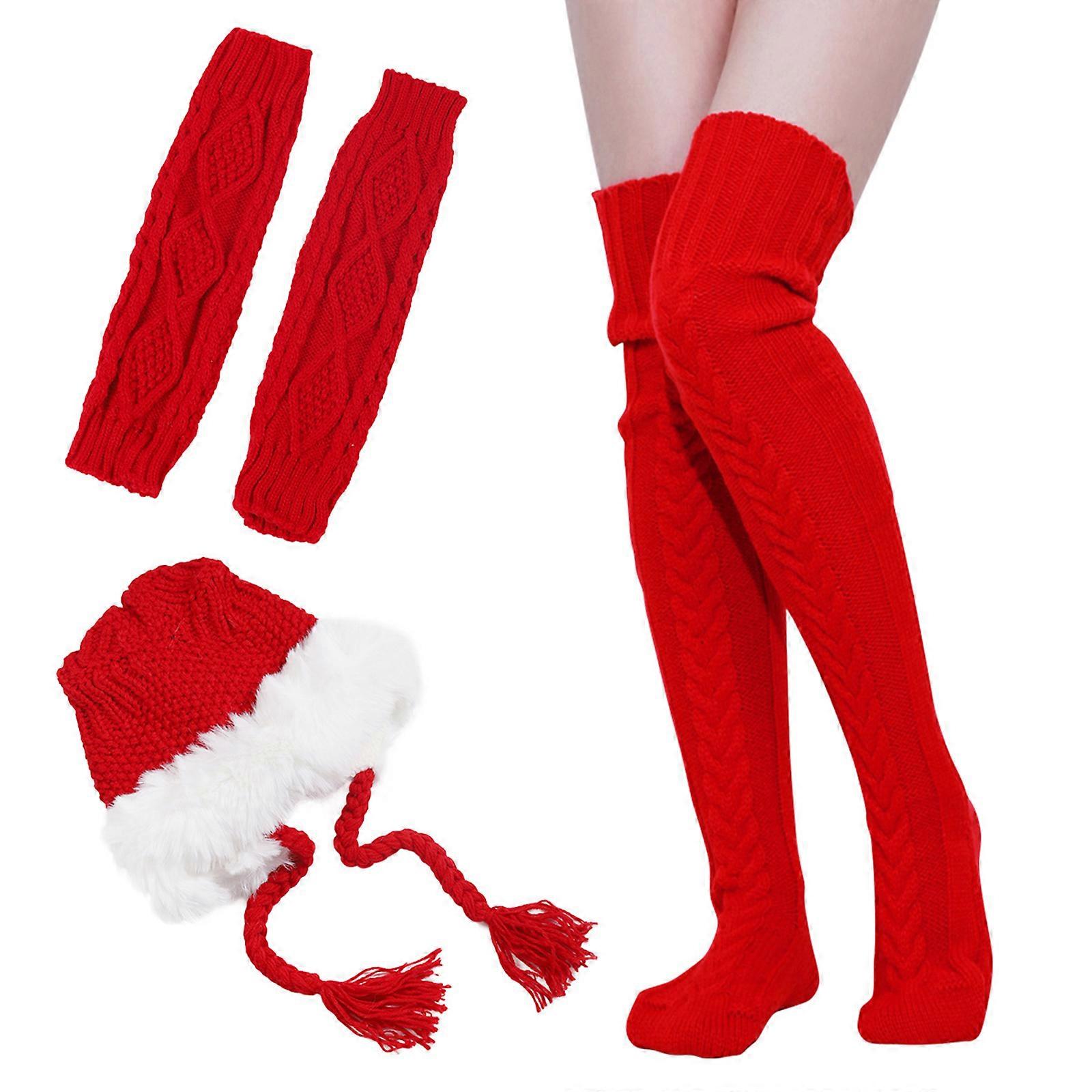 Christmas Costume Accessories SantaClaus Arm Gloves Knitted Hat Stockings Santa Cosplay Costume Festival Party Props