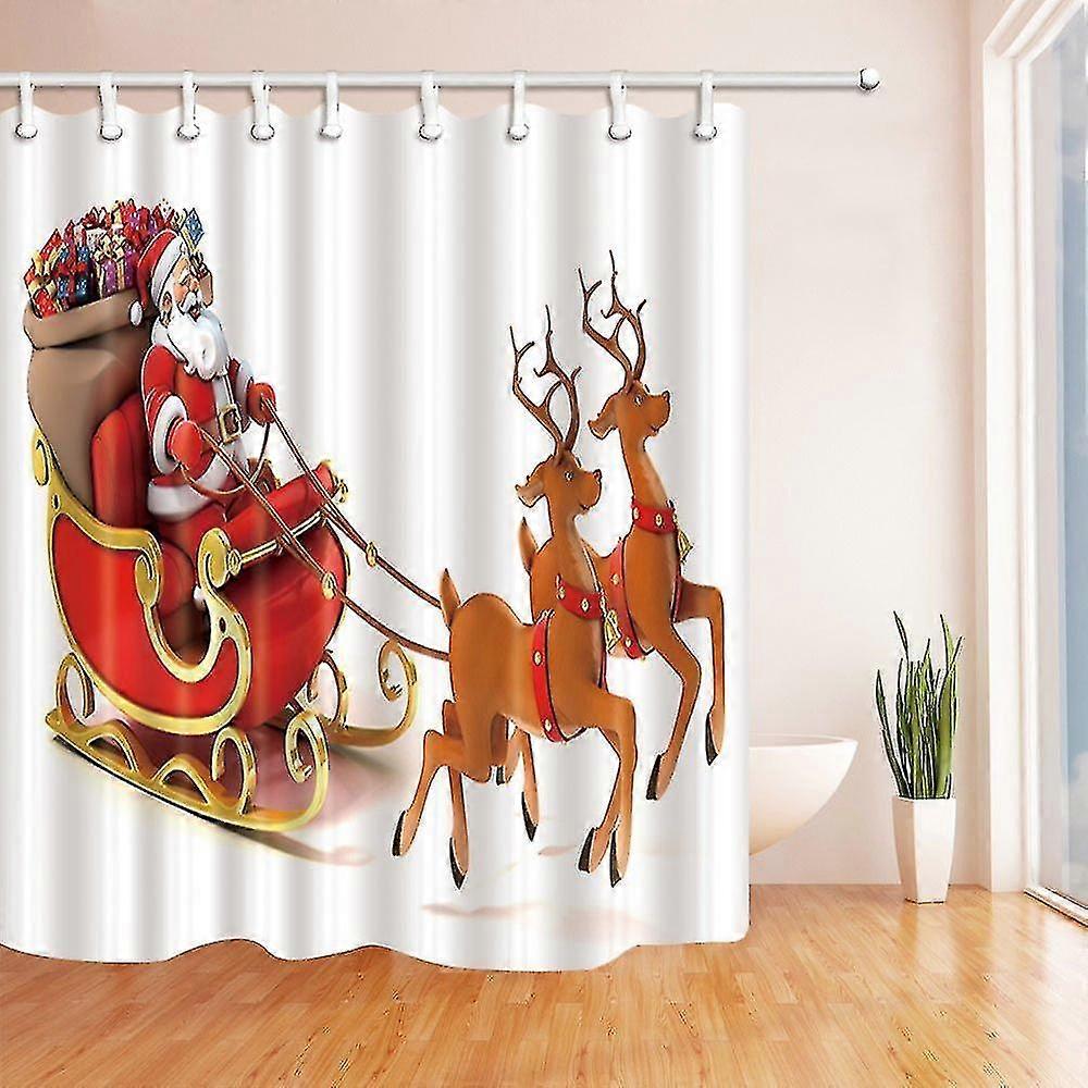 Christmas Santa Claus Drives Reindeer On Snow Polyester Fabric Bath Curtain, Bathroom Shower Curtain 160x180 Cm E---64697