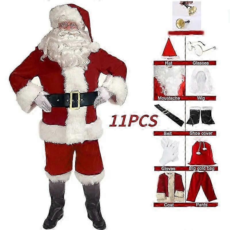 Christmas Santa Claus Cosplay Costume Classic Red Deluxe Velvet Xmas Men Santa Claus Disguise Suit Christmas New Year Party