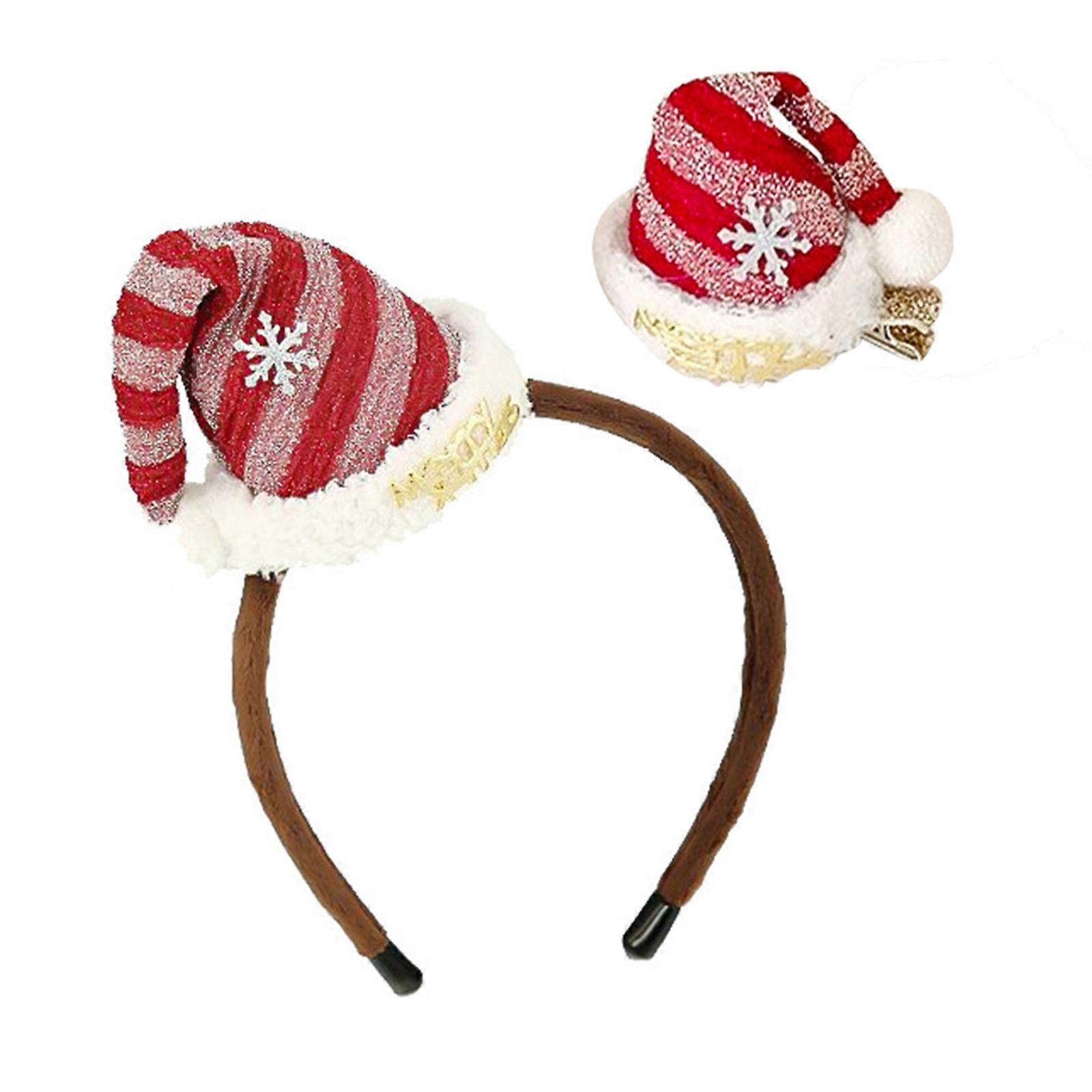 Christmas Santa Hat Headband Hairpin Set Plush Snowflake Hair Hoop Funny Headwear for Adults Kids Cosplay Costume Decor