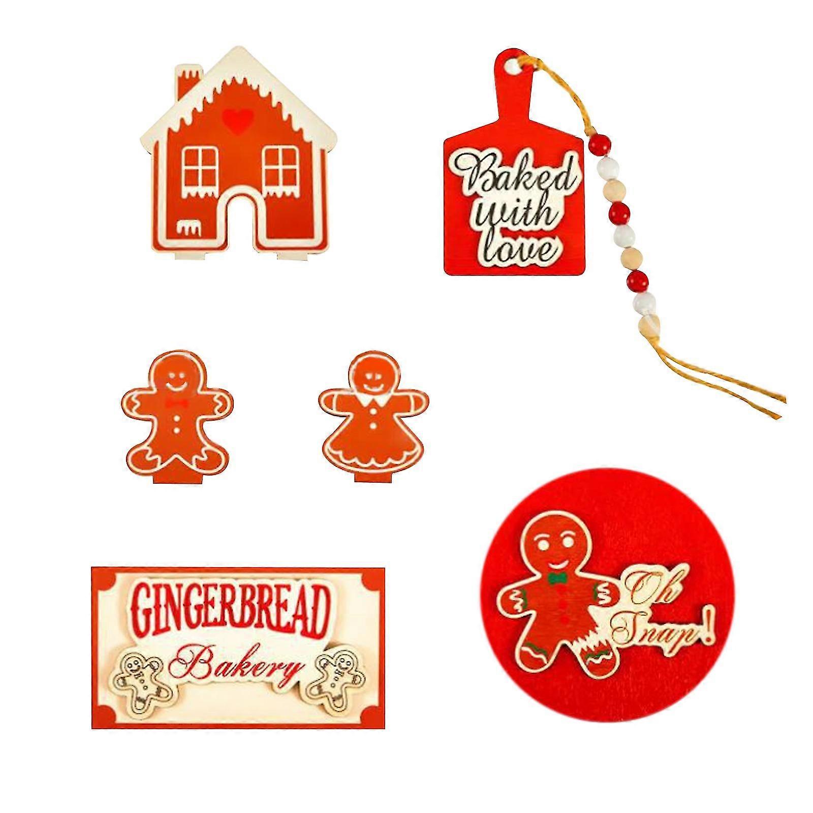 Christmas Gingerbread Decor Set, Wooden Christmas Tiered Tray Decor For Party Decoration