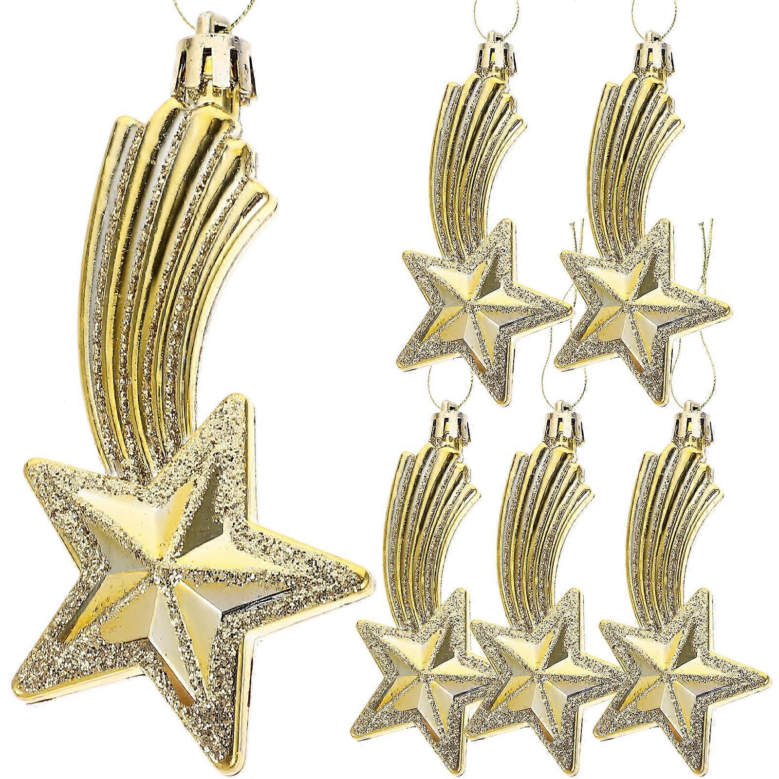 Christmas Star Decorations Golden 11.2x5.3cm For Families And Friends 6Pcs