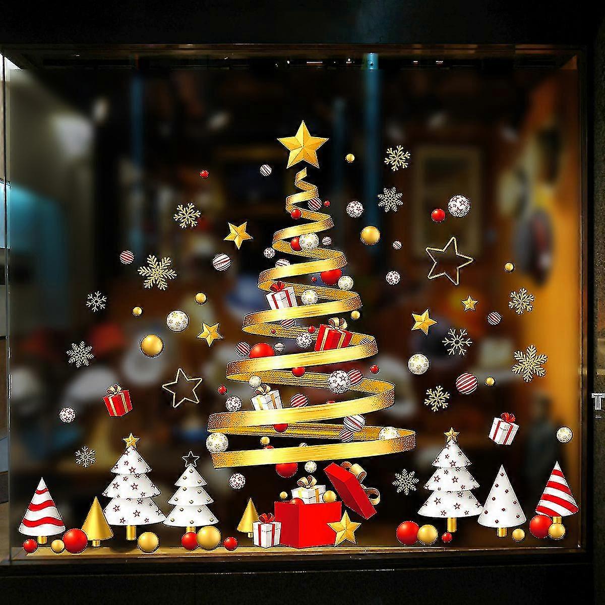 Christmas Stickers Large Glass Window Stickers Christmas Tree Wall Stickers Decorative Windows Electrostatic Snowflake Window Stickers