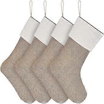 Christmas Stocking Hessian Fireplace Christmas Socks For Filling & Hanging For Christmas Decoration Or Diy (flax, 4)