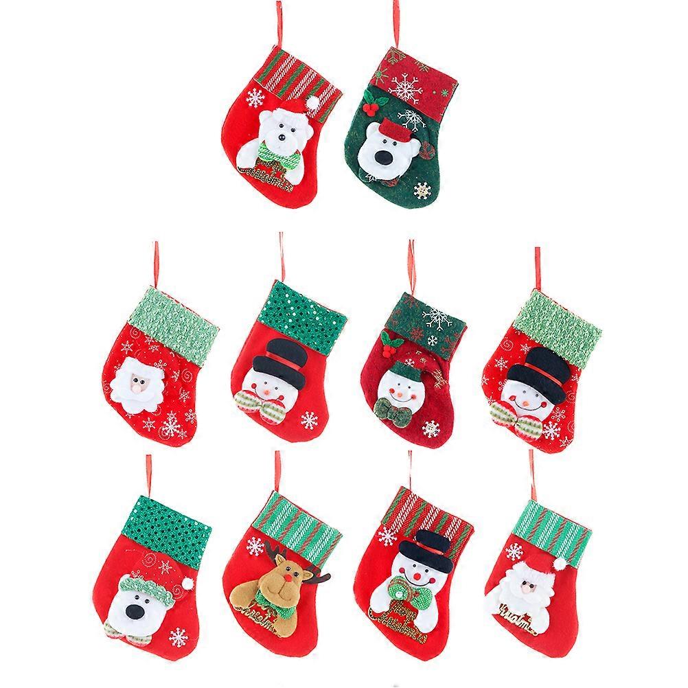 Christmas Stocking Decor 10pcs Small Hanging Gift Holder Socks for Candy, Chocolates & Holiday Storage Adorable Xmas Pendant Bags for Wall & Tree
