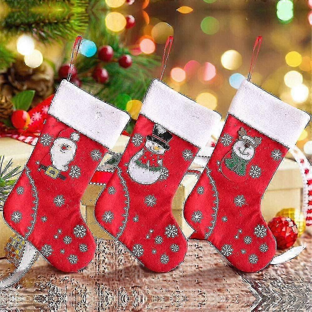 Christmas Stockings 3 Pcs Santa Claus Candy Sock Bags 7.9"x12.2" Santa Claus Socks Plaid Burlap Holder Tree Decor