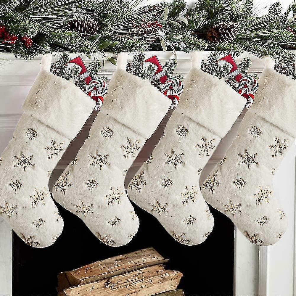 Christmas Stockings 4 Pack 19 Inch, Large Faux Fur Xmas Stocking With Gold Sequin Snowflakes For Family, Country Rustic Personalized Holiday Indoor De