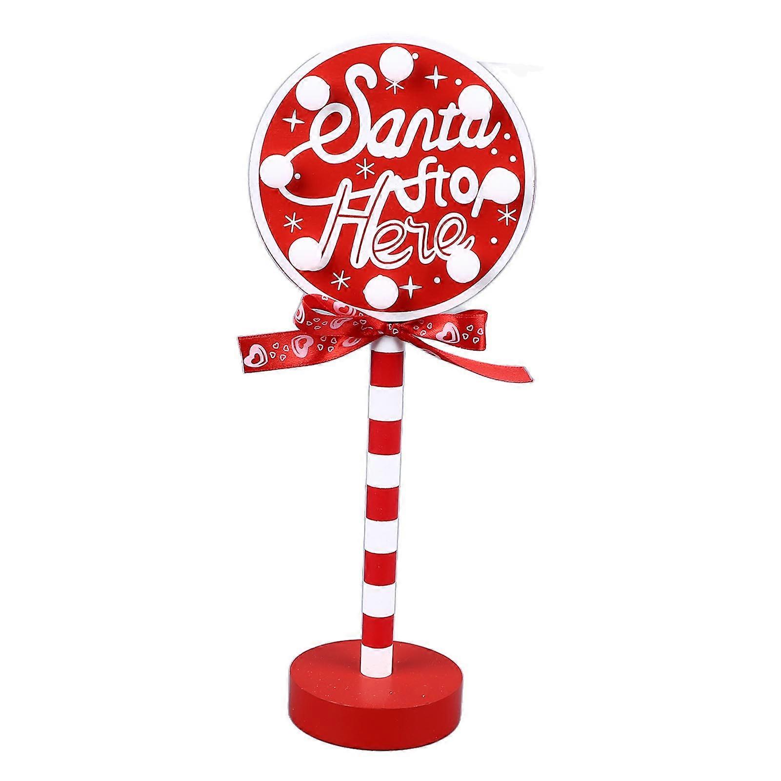 Christmas Stop Here Decor Metal Solid Wood LED Delicate Santa Stop Here Tree Topper for Christmas Party Round 12x8x30.5cm YEMAA