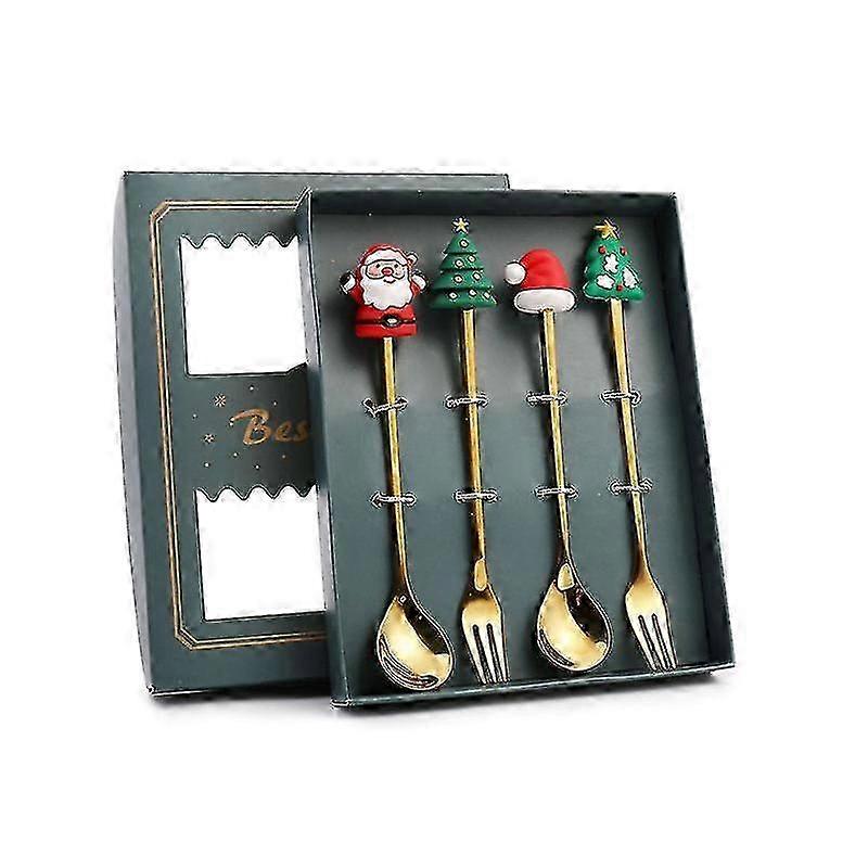 Christmas Spoon Fork Set Cartoon Santa Claus Spoon Dessert Spoon Fork Gift Box