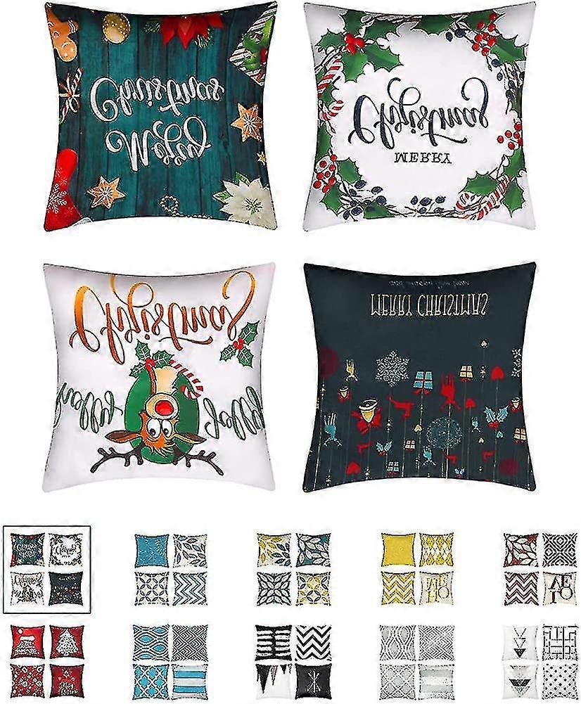 product content [Christmas Green].100% Polyester.Premium MaterialThese Christmas decorative throw pillow covers are made of durable polyester, no bleeding, fading or fraying issue, which is comfortable and friendly to your skin or pets. There maybe slightly color different due to different monitor.Package IncludedSet of 4 piece 18 x 18 inch Christmas patterns pillow covers included. (Note: Pillow Insert NOT Included) Double-side printing. Please allow 1-2cm differs due to manual measurement.Hidden ZipperInvisible zipper closure makes the square cushion case look more elegant. Easy to put your pillow insert on or off. (NOT Included Insert or Filler) Delicate stitching to avoid fraying and ripping.Wide ApplicationThe throw pillow covers is breathable and multiple vibrant colors for your preference, perfect for decorate your home, living room, bedroom, sofa, couch, chair, bench, patio, office, bed, car seat, outdoor / indoor. Ideal gift for friends and families, wife and husband.Wash GuideMachine wash separately in cold water at gentle cycle, or wash by hand, tumble dry low, do not bleach and iron. Please feel free to let us know if you have any questions about our couch pillow covers and service. We are sure to make a reply within 24 hours and provide satisfying solutions.