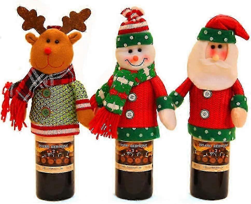 Christmas Set, 3 Pcs Christmas Wine Bottle Cover Wine Bottle Decor