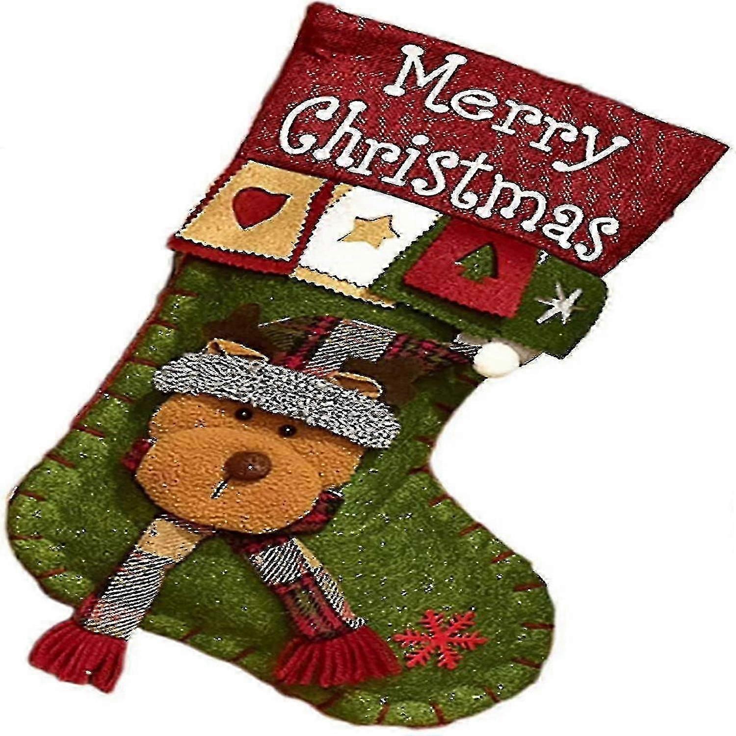 Christmas Sock, Large Christmas Sock To Hang, Christmas Sock To Hang Bag For Tree, FireplaceThe product is shipped based on the color or size of the main image of the product page.High Quality Christmas Stocking Our Christmas decoration stockings are made from high quality material. It comes with strong hanging tape for easy and safe hanging. They are designed with care, perfect to receive a variety of gifts.Large storage Measures 50cm from top to bottom. Opening measures 20cm, large sock to fill with your surprise gift. With its large opening and spacious interior, it is perfect for all kinds of candies, small gifts and toys so that your child will feel in the Christmas atmosphere.Design Classic but special design of Christmas stockings 3D handmade decoration of cute snowmen, reindeer, Santas and Christmas trees. Great Christmas decorations, brightening up your Christmas holidaysAll the details are amazingly crafted and appear delicate. Both girls and boys will be very excited.Exceptional handcrafted quality Vibrantly handcrafted and extremely detailed. Meticulous sewing and meticulous control of each stocking. Durable reusable for many years. Great for Christmas decoration, perfect for holiday season.Beautiful Christmas Decoration 1 piece Christmas sock. These Christmas socks are the classic essential elements to decorate your fireplace, Christmas tree, staircase, bed, etc. Leave the whole house full of festive atmosphere. Bring more Christmas joy to your family. Great Christmas decorations, brightening up your Christmas holidaysColor: WapitiChristmas socks, Xmas Gift Bag, Christmas decoration Large Christmas Stockings Christmas Stocking Hanging Christmas Gift Bag Hanging for Tree, fireplace, shop window, Candy BagA wonderful Christmas sock for childrenChristmas socks Ideal for storing gifts, candies and snacks for treats and surprises. Christmas stocking socks to garnish and Hang Christmas socks.Christmas stockings are perfect for hanging by the fire, on the Christmas tree, in a store window or on the children's bed, which will add a warm Christmas atmosphere. snow candy socks gifts decoration bag-Santa Claus.Use this Xmas Gift Bag to send a gift to your loved ones, they will be surprised and have an unforgettable ChristmasChristmas Stocking, Christmas Stocking Christmas Stocking Christmas Boot Socks Hanging Gift Bag Candy Christmas Stockings Socks Gift Bag Holiday Decoration.Christmas socks It is perfect for your holiday decoration. Suitable for decorating the Christmas tree at home, restaurant, hotel, club or bar. Increase the warm Christmas atmosphere.Surprise your children when opening the presents of the delicate Christmas stockings of the Christmas seasonChristmas sock to hang Christmas gift bag Hanging for Candy Biscuit Chocolate Christmas sock to hang Christmas gift bag Xmas Hanging for Bonbon Biscuit Chocolat.Package included:1 * Christmas stocking