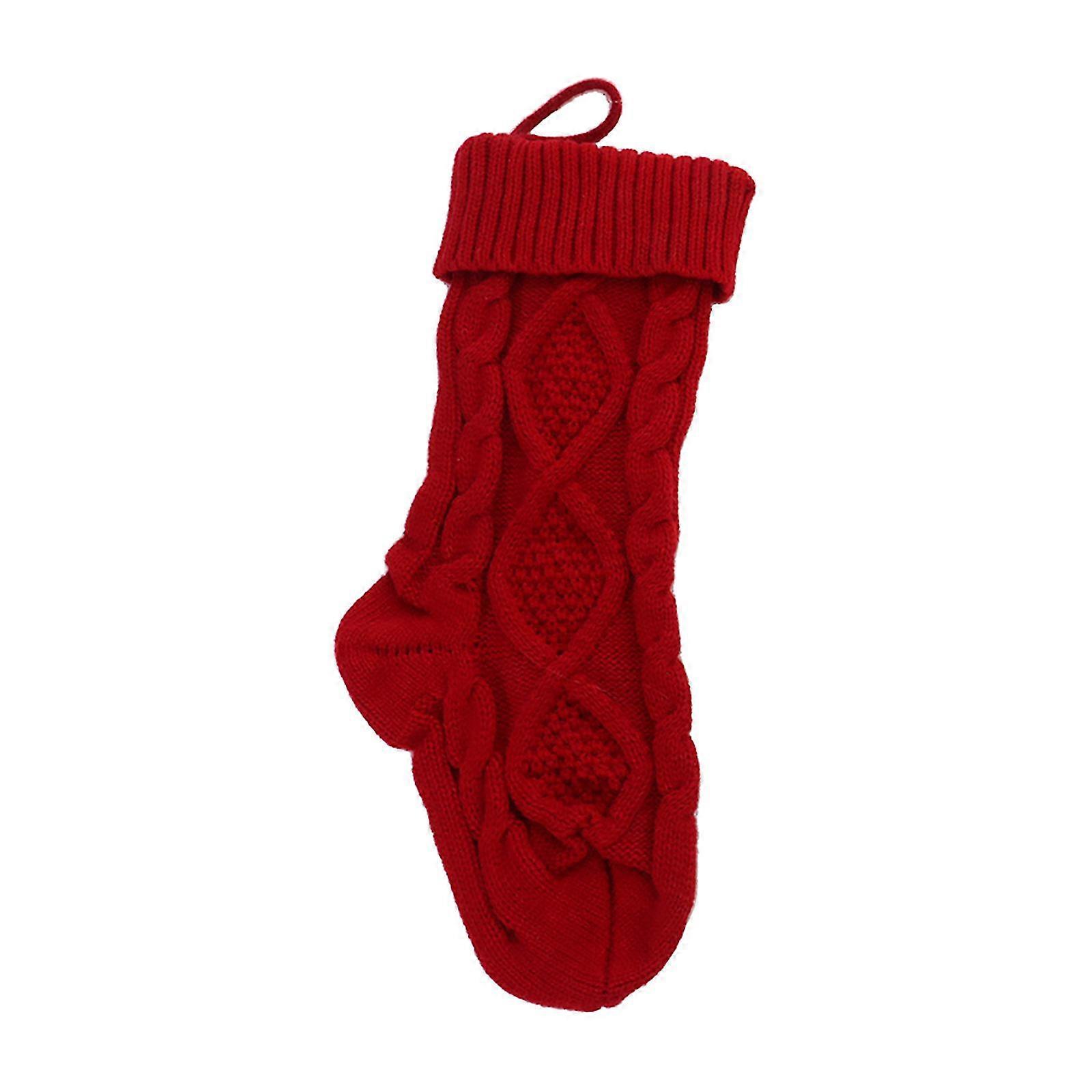 Christmas Sock Decoration, High Quality Knitted Hand-knitted 18 Inch Pendant, 3 Color Stripes, Elastic, Holiday Gift Bag,Red