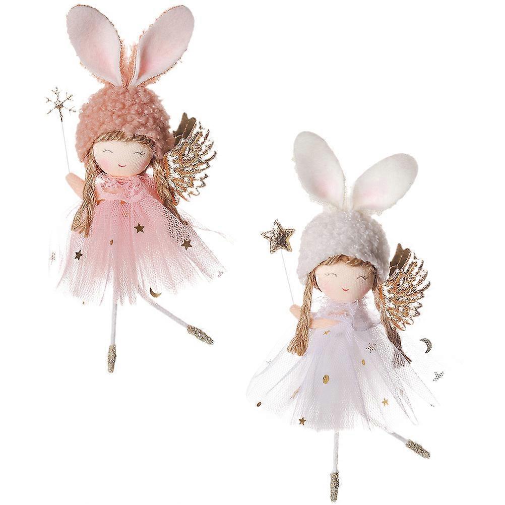 2pcs Angel Ornaments for Christmas Tree & Room Decor Soft Fabric Hanging Dolls for Festive Xmas Party, Wedding & Holiday Celebrations