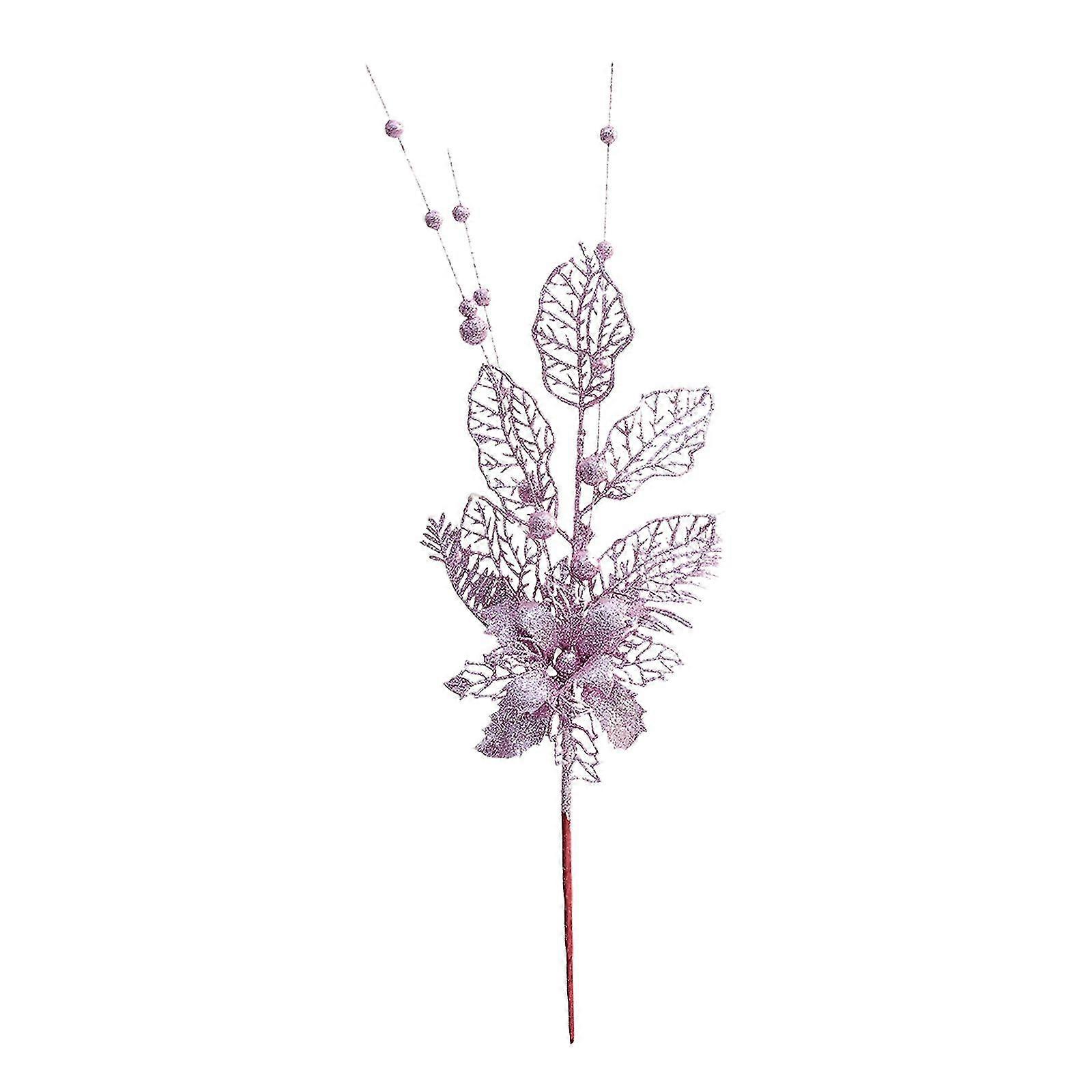 Christmas Tree Stems - Gold Glitter Berry Branches For Flower Arrangements, Wreaths, Garlands, And Home Decor - 42cm,Pink
