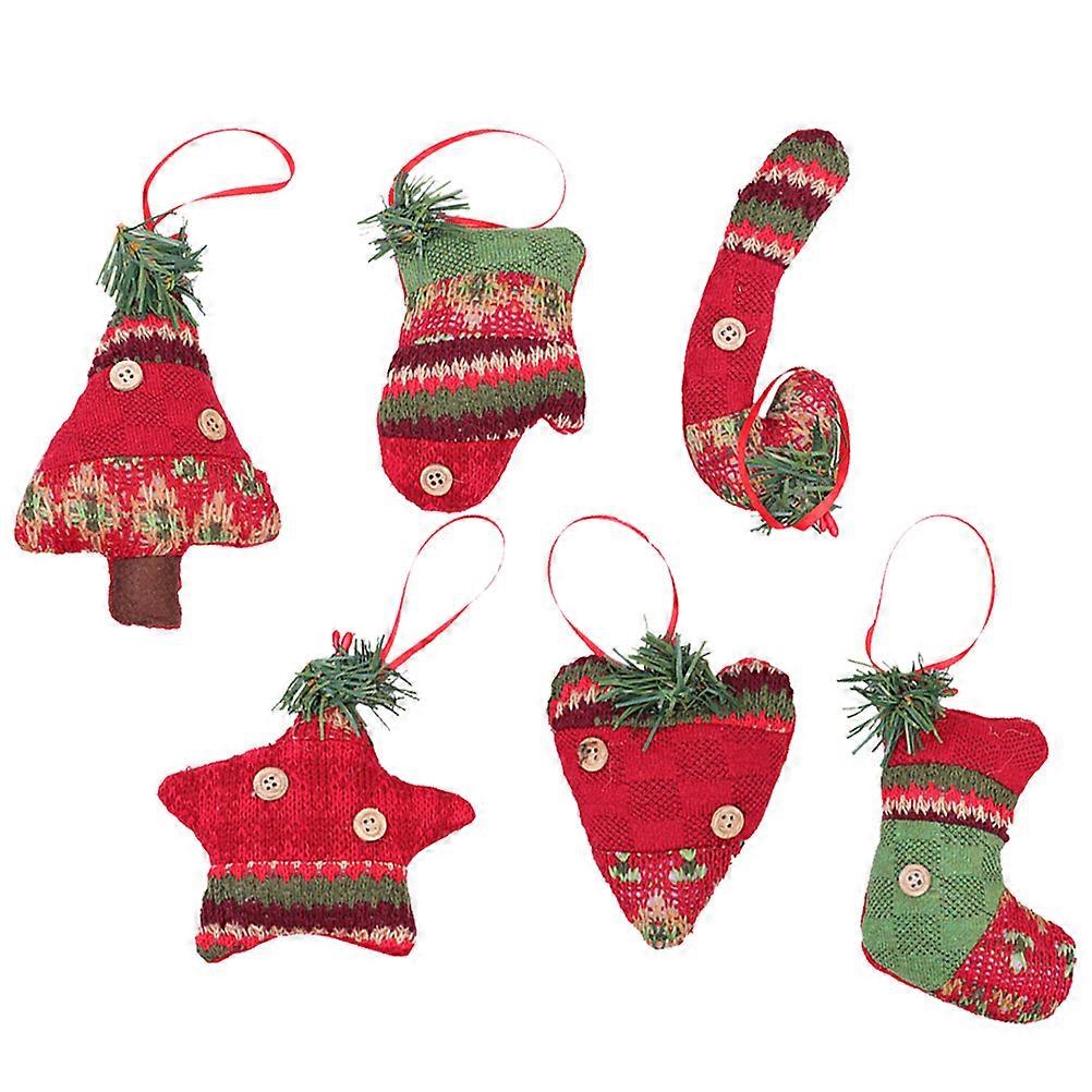 Holiday Tree Hanging Decor 6Pcs Festive Ornaments For Christmas Tree Decoration 14x9cm Red Plush Design Decorative