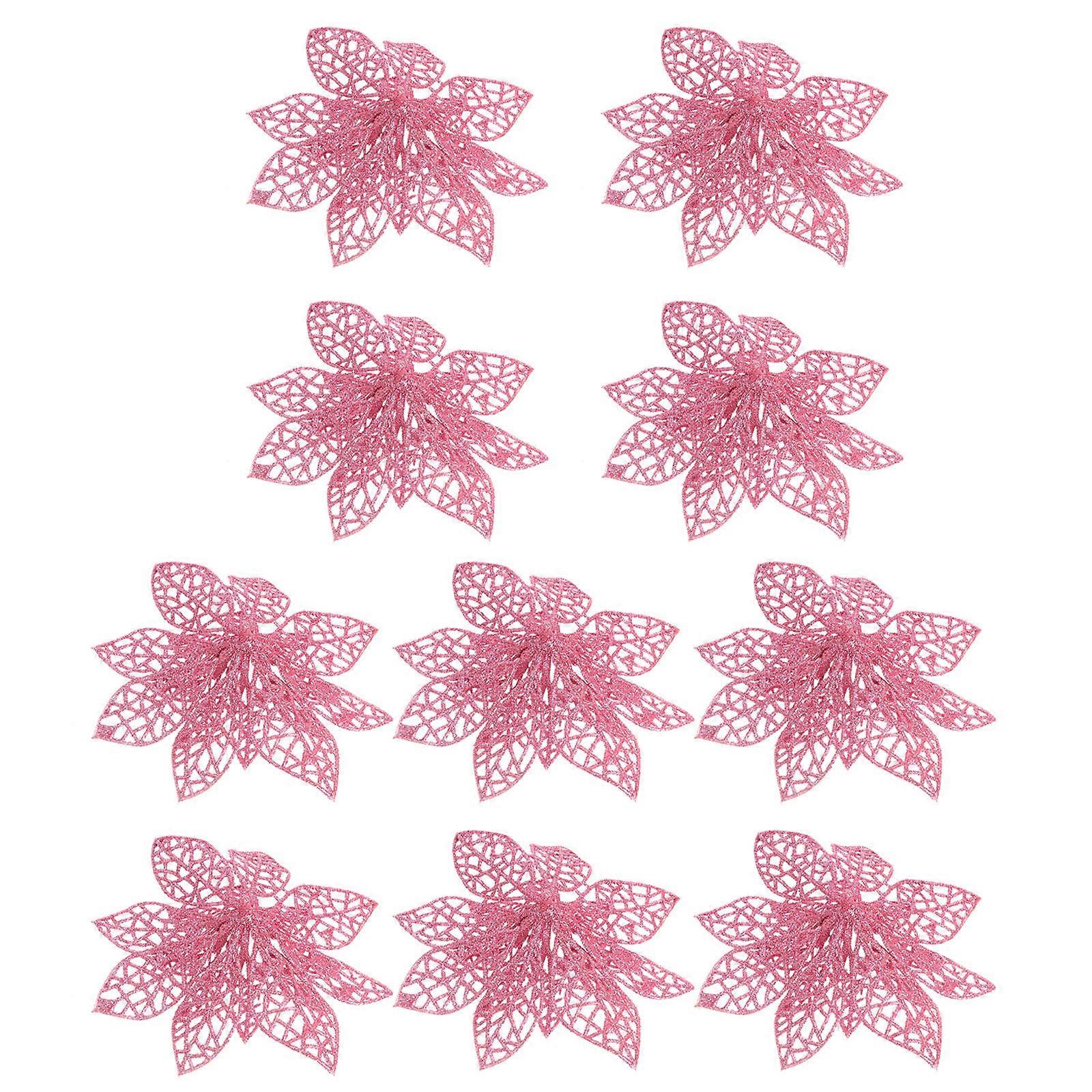 Christmas Tree Decorations Pink Artificial Flowers Round Shape 10Pcs for Festive Occasions