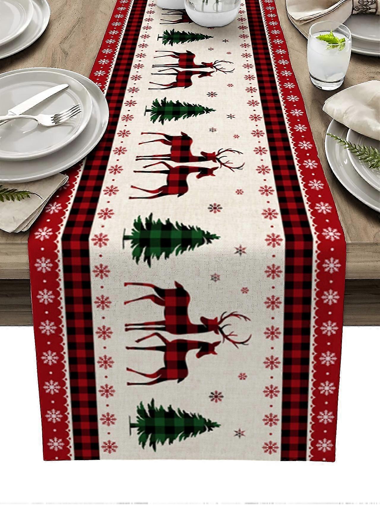 Christmas Tree Elk Snowflake Plaid Table Flag Family Party Wedding Decoration Table Flag Christmas Decoration Home Table Flag