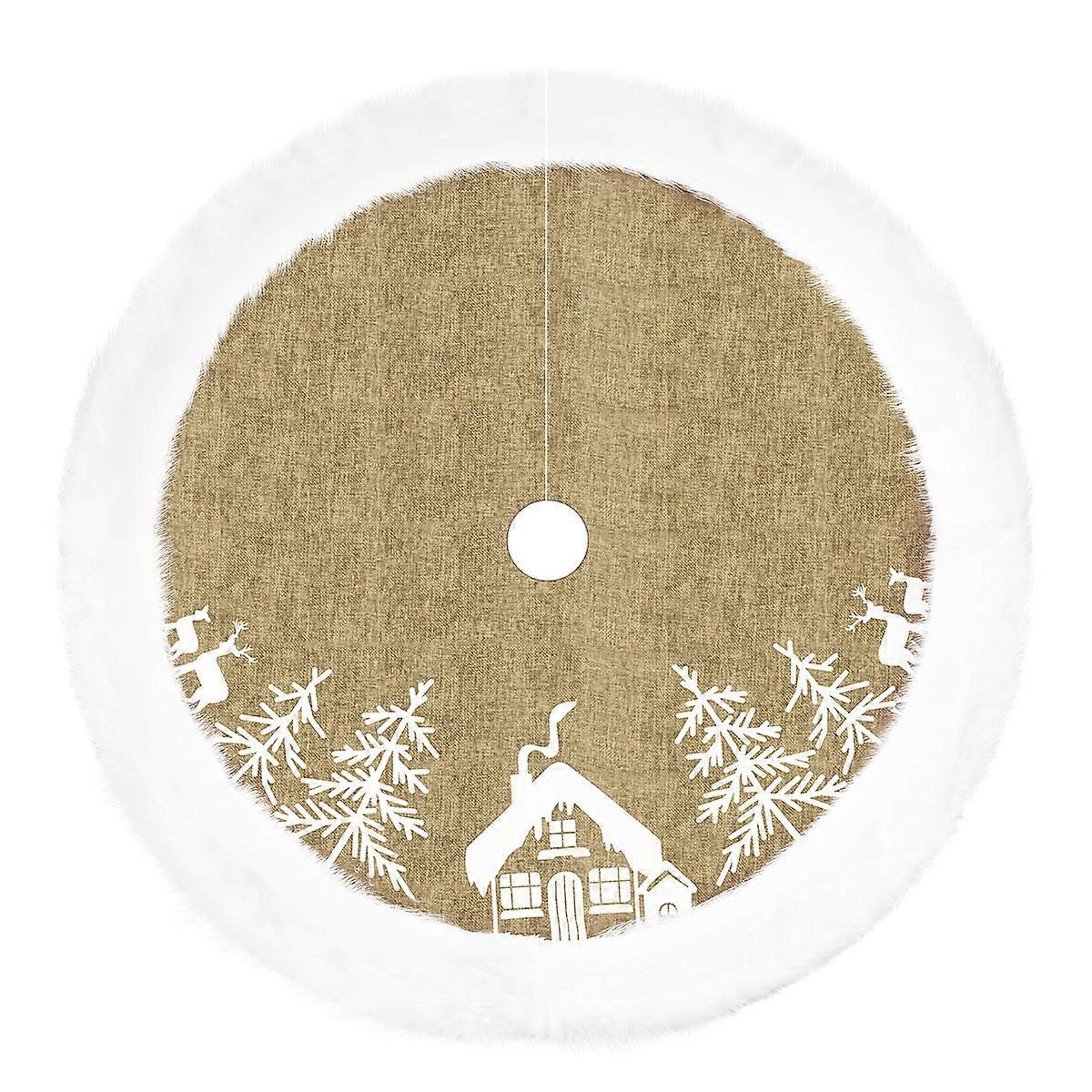 Christmas Tree Skirt Xmas Tree Base Mat Holiday Christmas Tree Ornaments Home Party Decorations Beige Round Shape Pastoral Style 1Set