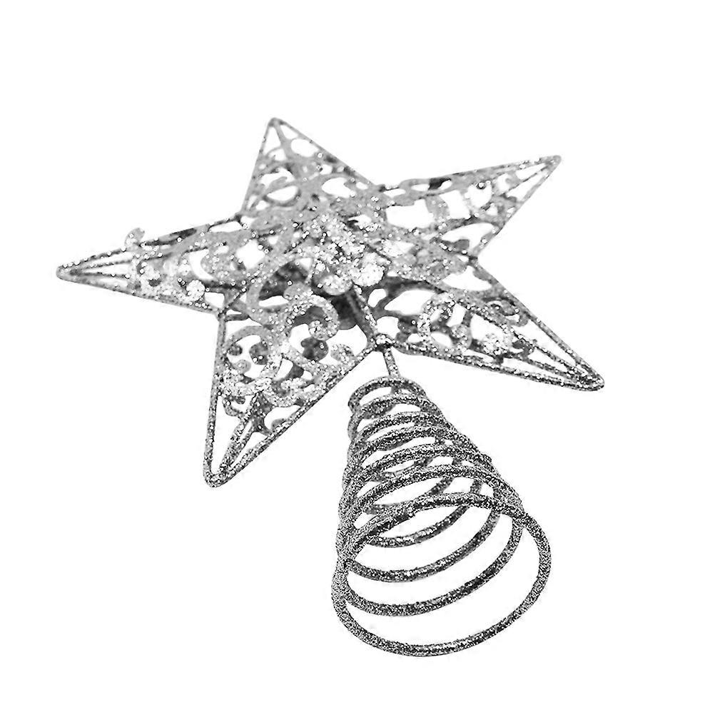 Christmas Tree Topper Wrought Iron Star Pentagram Hanging Pendant Silver Indoor Outdoor Decor 1Pack