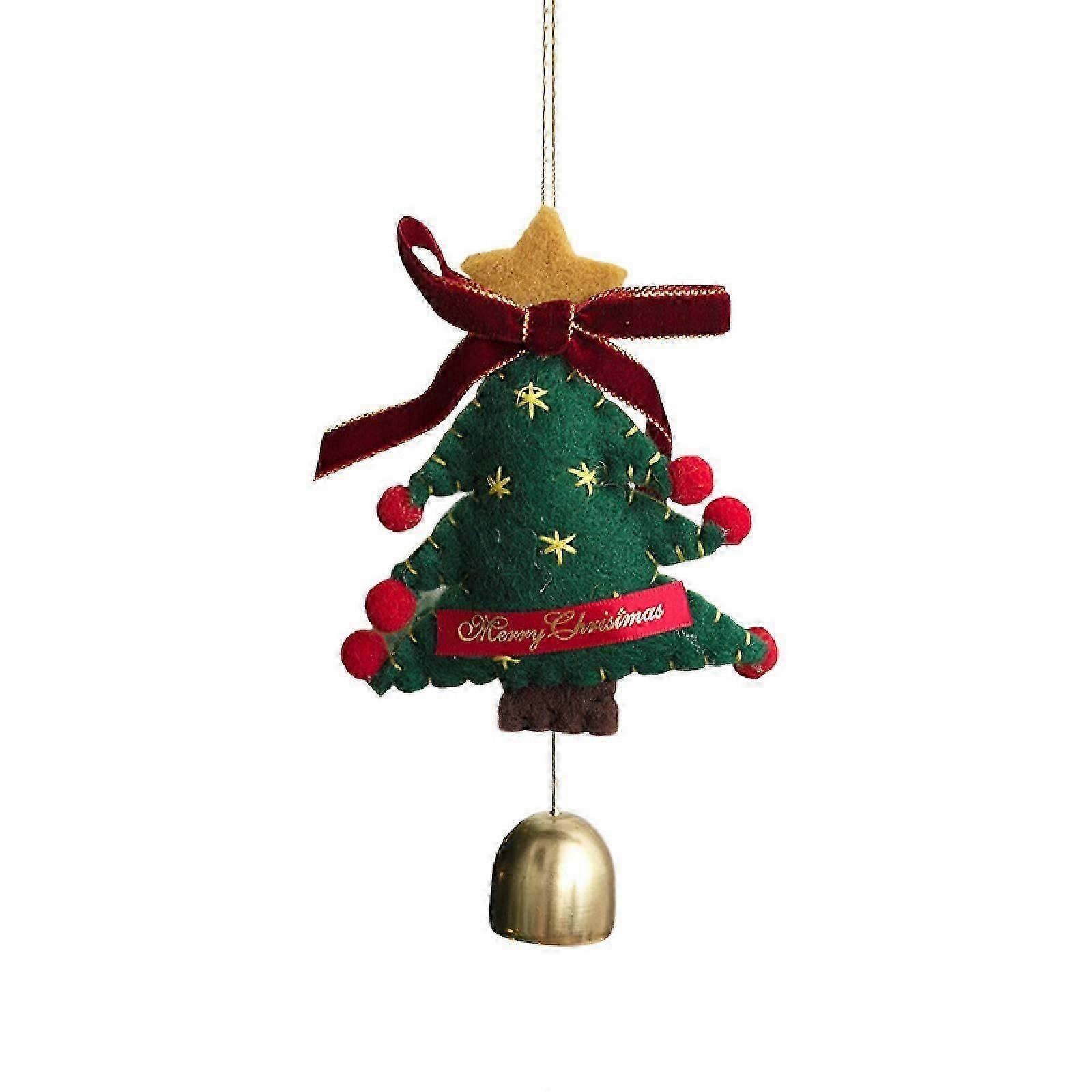 Christmas Tree Bell Pendant Set - Felt Christmas Tree Decorations - 2 Pcs Red and Green Holiday Charm