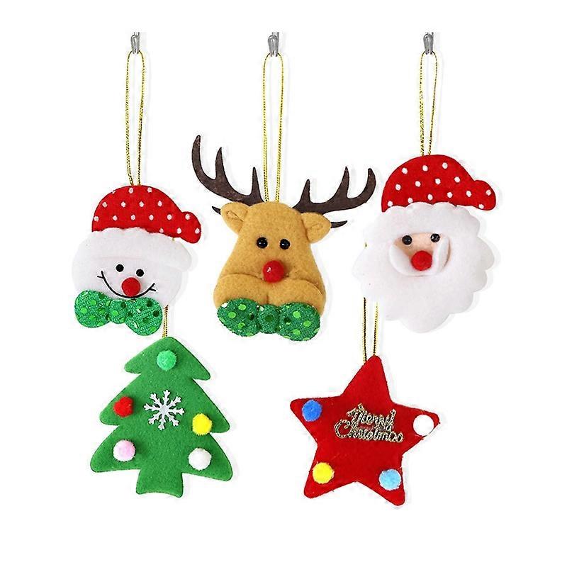 Christmas Tree Pendant Cartoon Santa Claus Elk Snowman Pentagram Plush Dolls Hanging Ornaments 5pcs /Bag