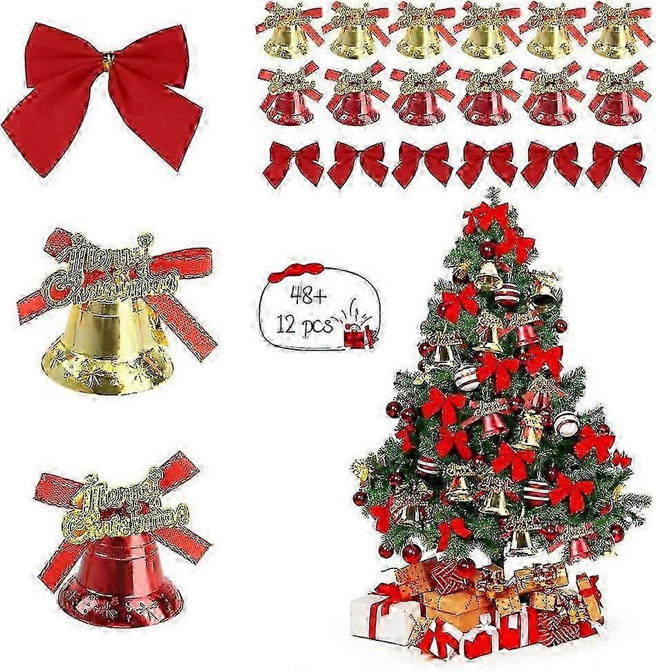 Christmas Tree Bow*48, Christmas Bell Pendant*12, Christmas Ribbon Bow Ornaments, Hanging Christmas Bell, Christmas Tree Decoration Bell, Christmas Pa
