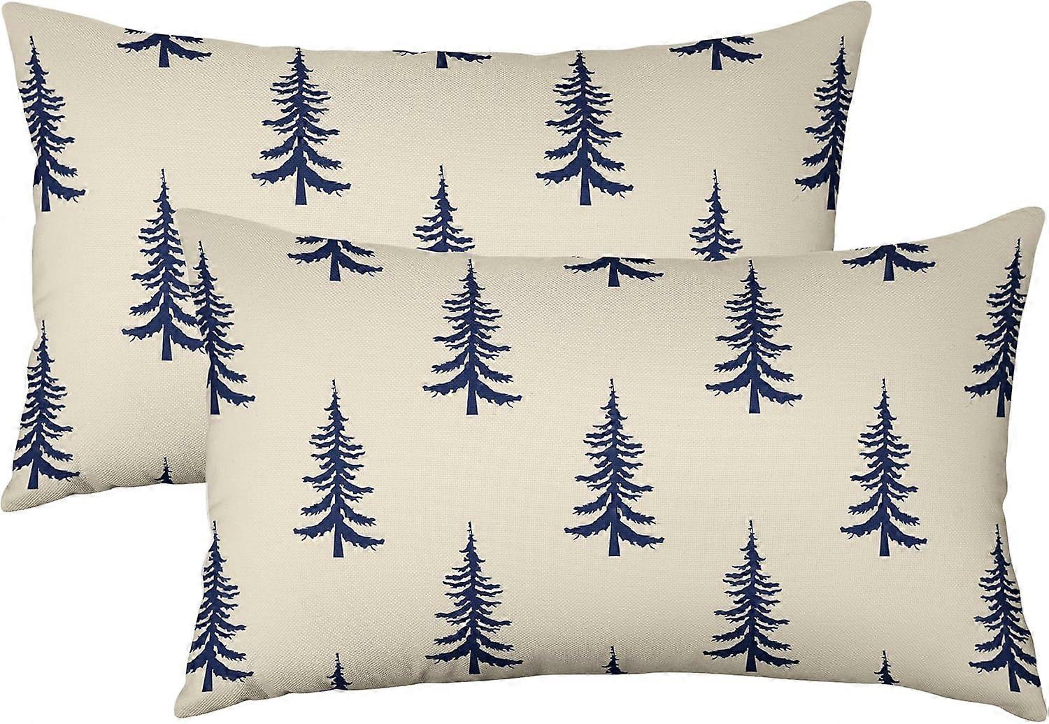 Christmas Tree Lumbar Pillow Covers 12x20 Set of 2 Blue Rustic Xmas Decoration Print Outdoor Decorative Throw Pillows Winter Pillowcases Linen Cushion