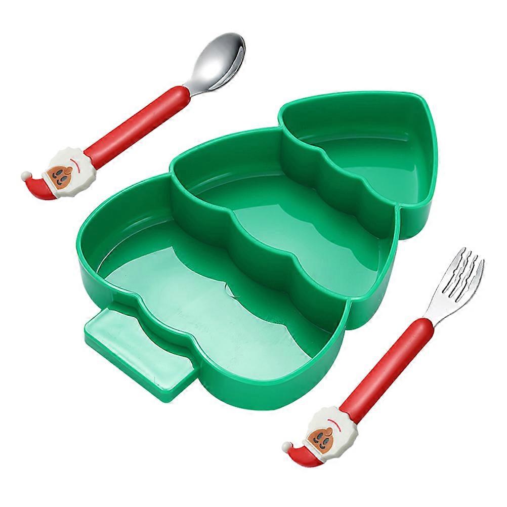 Christmas Tree Shaped Food Plate Set with Fork and Spoon Sections Festive Holiday Serving Tray for Christmas Dinnerware, Food Grade Plastic